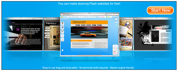 Andere Anbieter bieten Homepages in Flash an. Zwar gilt Flash unter Webexperten als suchmaschinenfeindlich. Google bietet aber inzwischen auch für Flash Lösungen an, mit denen die Suchroboter fündig werden. Ein kleiner Webauftritt ist nach 10 Minuten online. Anbieter sind Klasse-Homepage, Cabanova oder der US-Dienst Wix, welcher offensichtlich nicht durch internationale Sprachkompetenz glänzt. Dafür bietet Wix aber die Möglichkeit, Codeschnipsel für die Einbindung in die bekanntesten soziale Netzwerke wie MySpace oder Facebook zu erstellen.