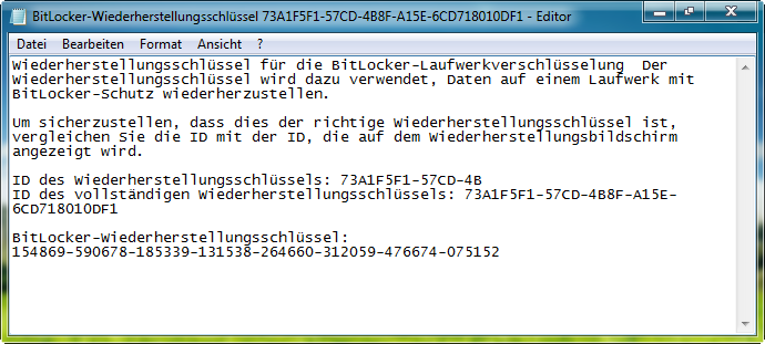Nach der erfolgreichen Verschlüsselung kann man auf die Daten nur durch Passworteingabe oder mit der entsprechenden Sicherheitskarte zugreifen. Sicherheitshalber erstellt BitLocker To Go auch noch einen Entsperrschlüssel ähnlich der PUK-Codes von Mobiltelefonen. Vergisst man das Passwort, kann man die Daten notfalls mit dem Schlüssel entsperren.